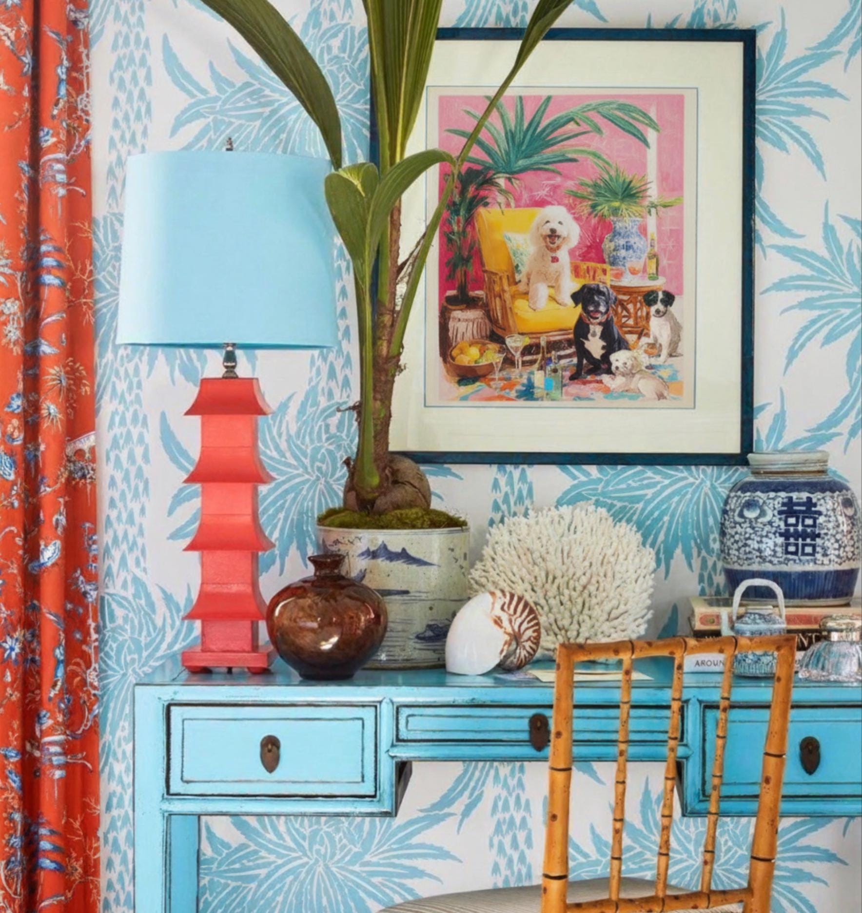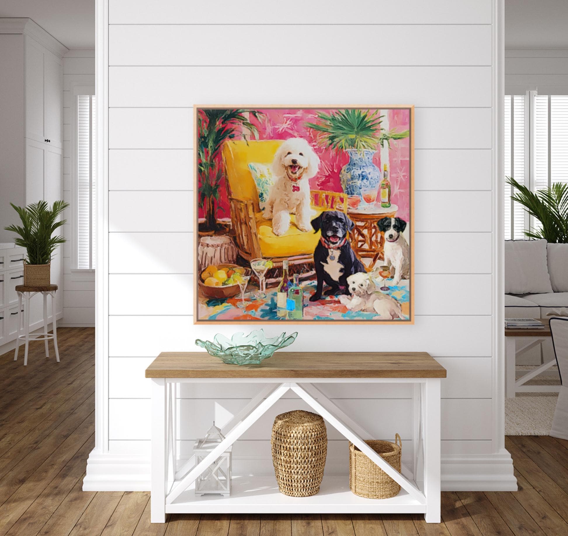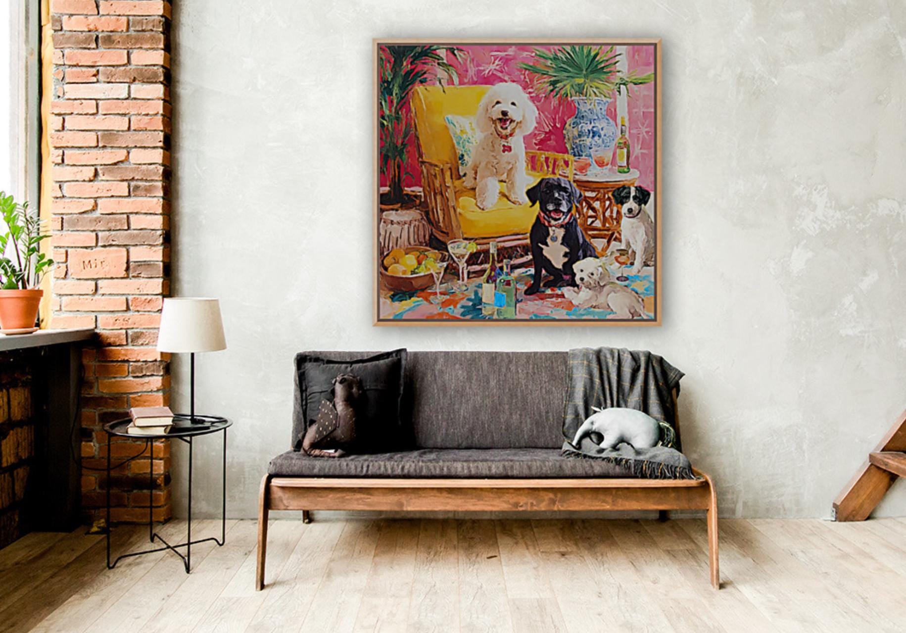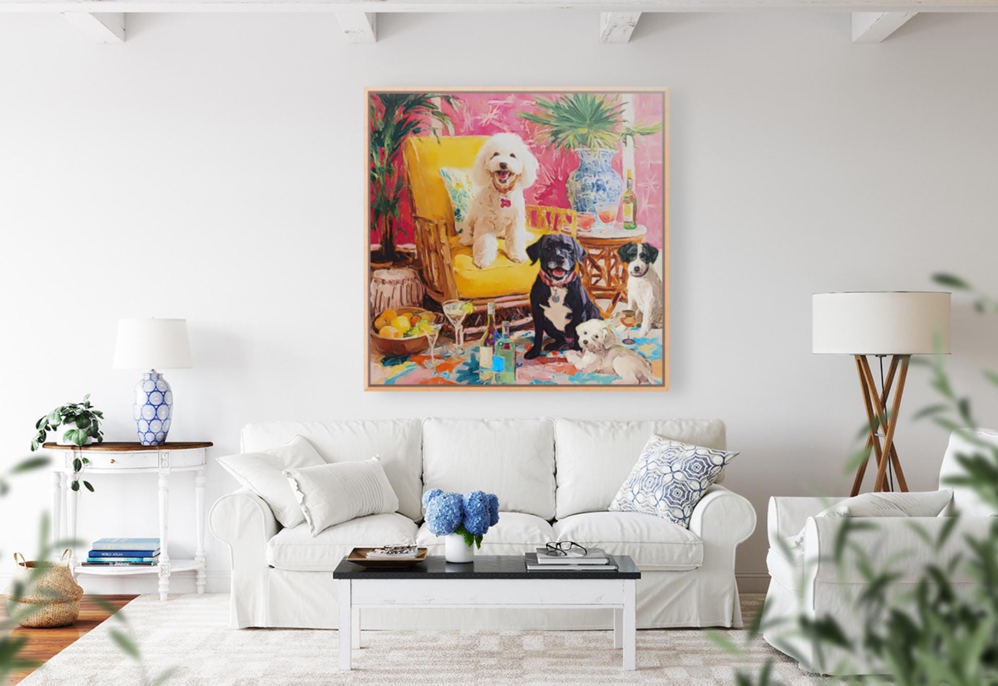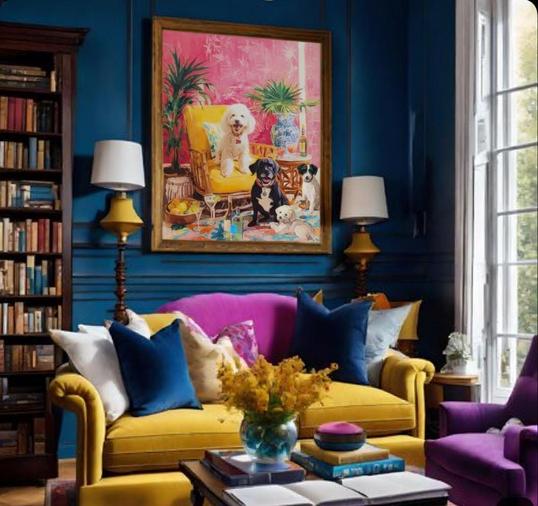 Whimsical Dogs Art Print: Drinks With Friends, Grandmillennial Decor