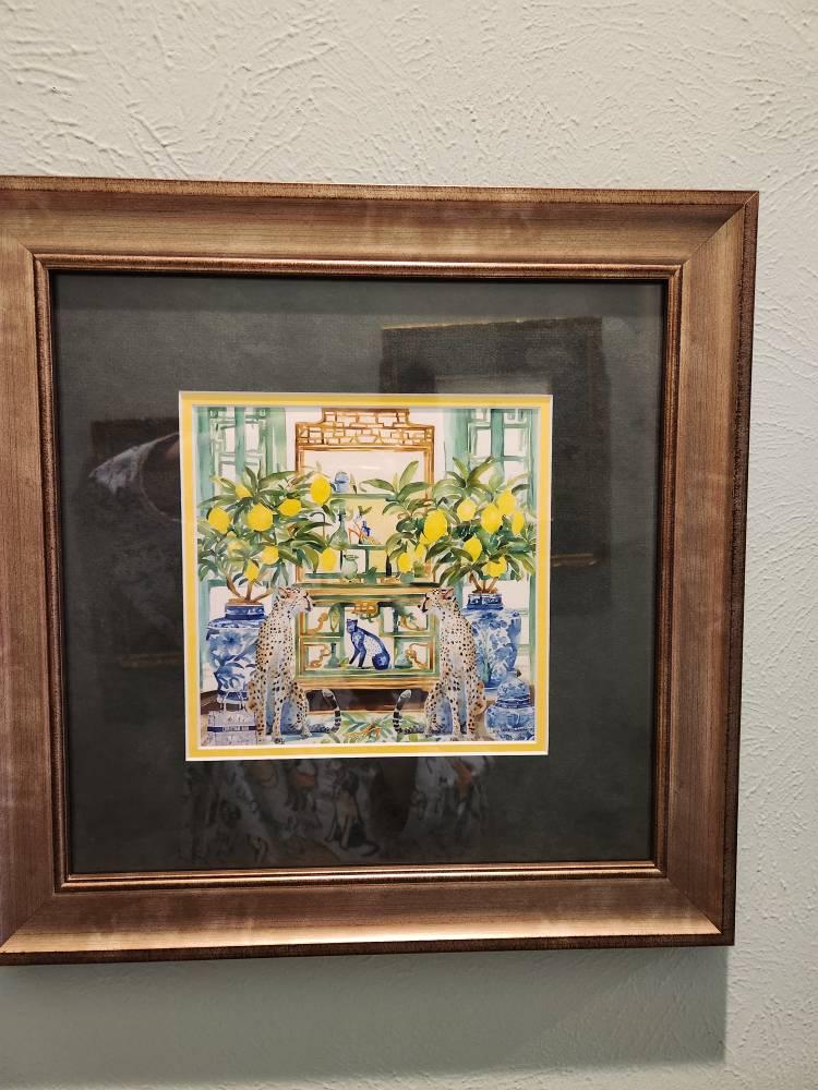 Sophie's art is the modern interpretation of Chinese artistic traditions featuring pagodas, landscapes, blue and white porcelain, ginger jars, pagodas, cheetahs and monkeys. Sophie developed her own recognizable style with bright colors and whimsical details.
