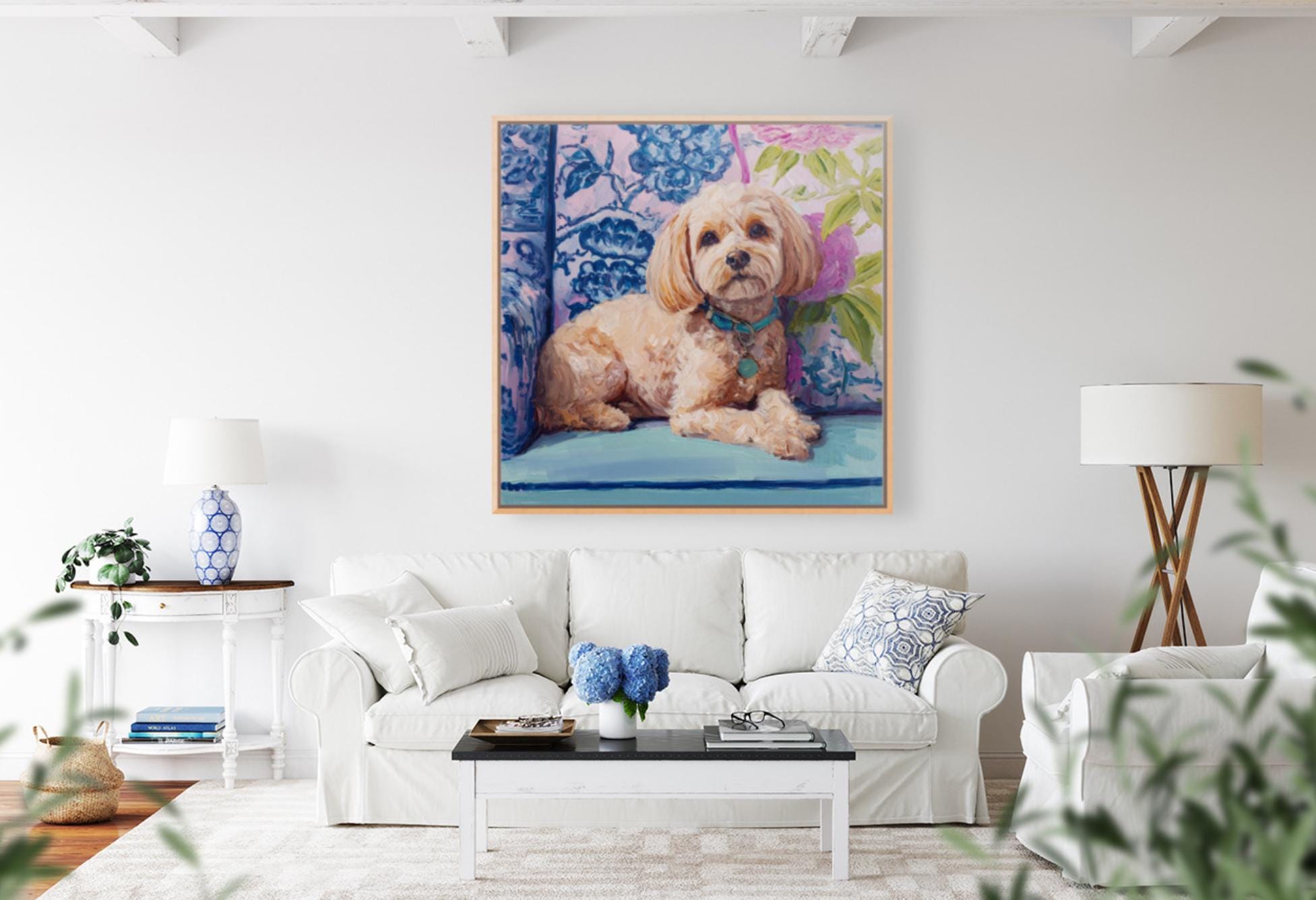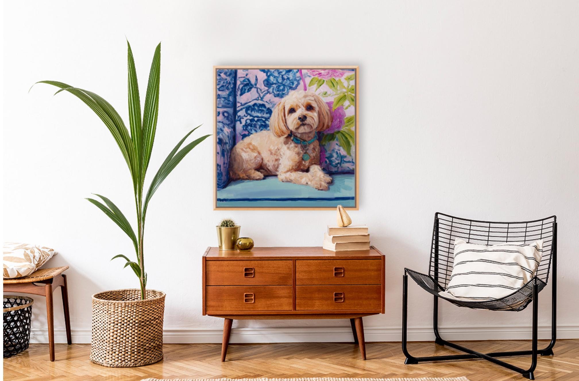 Grandmillennial art, A Little Princess, coastal Multipoo dog signed giclee print