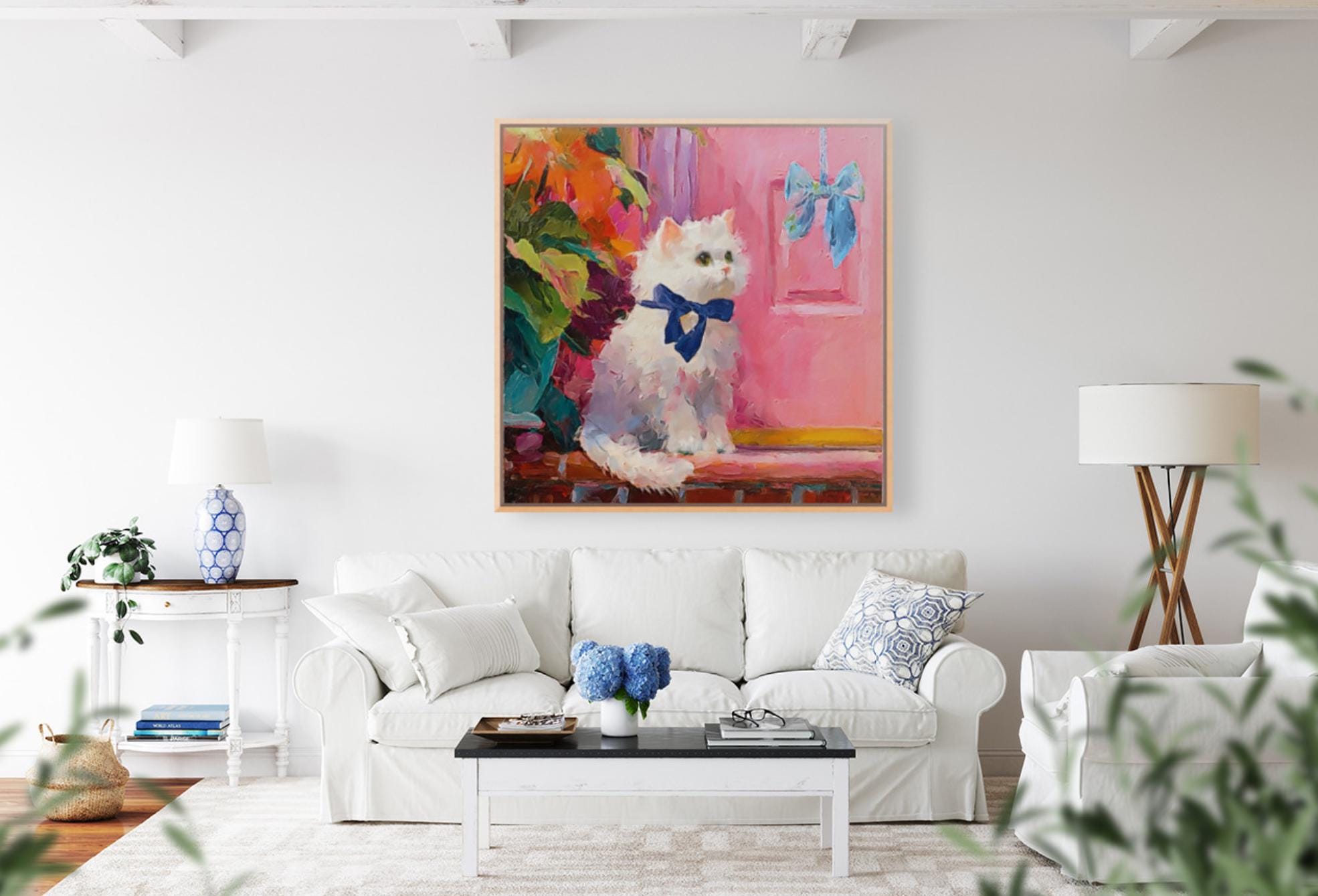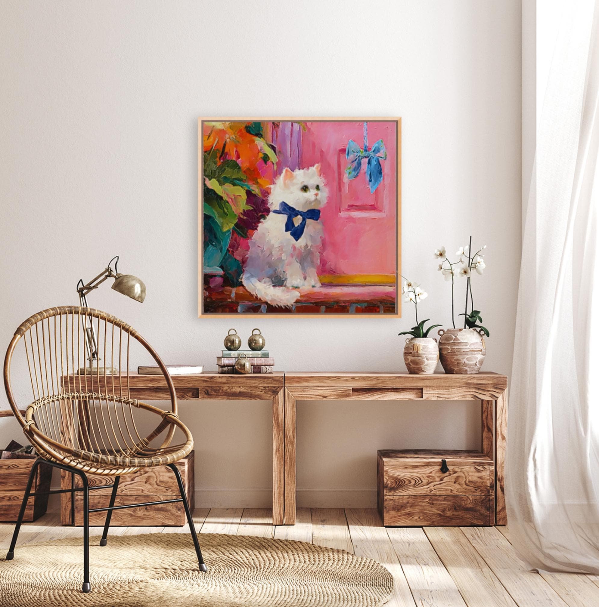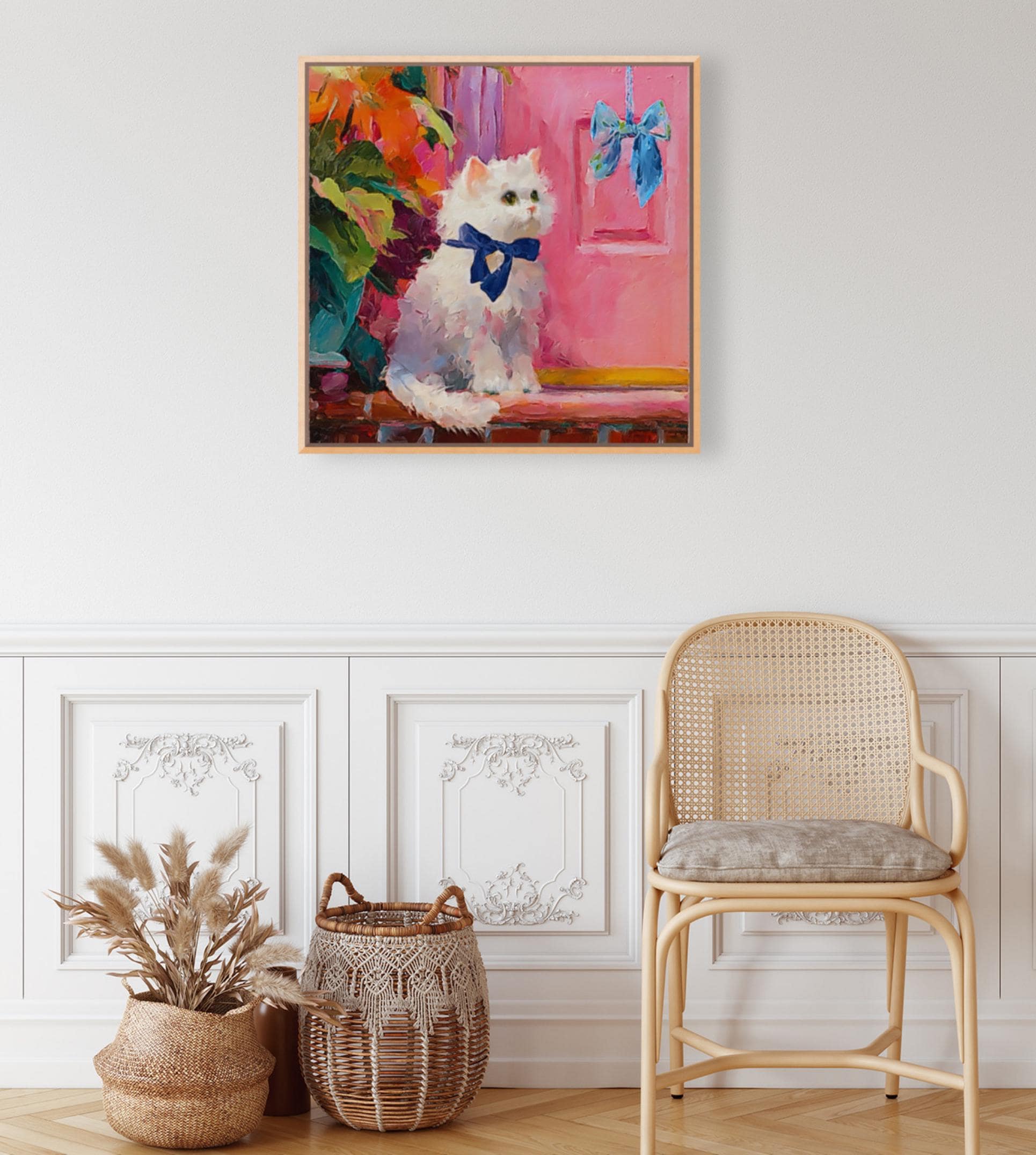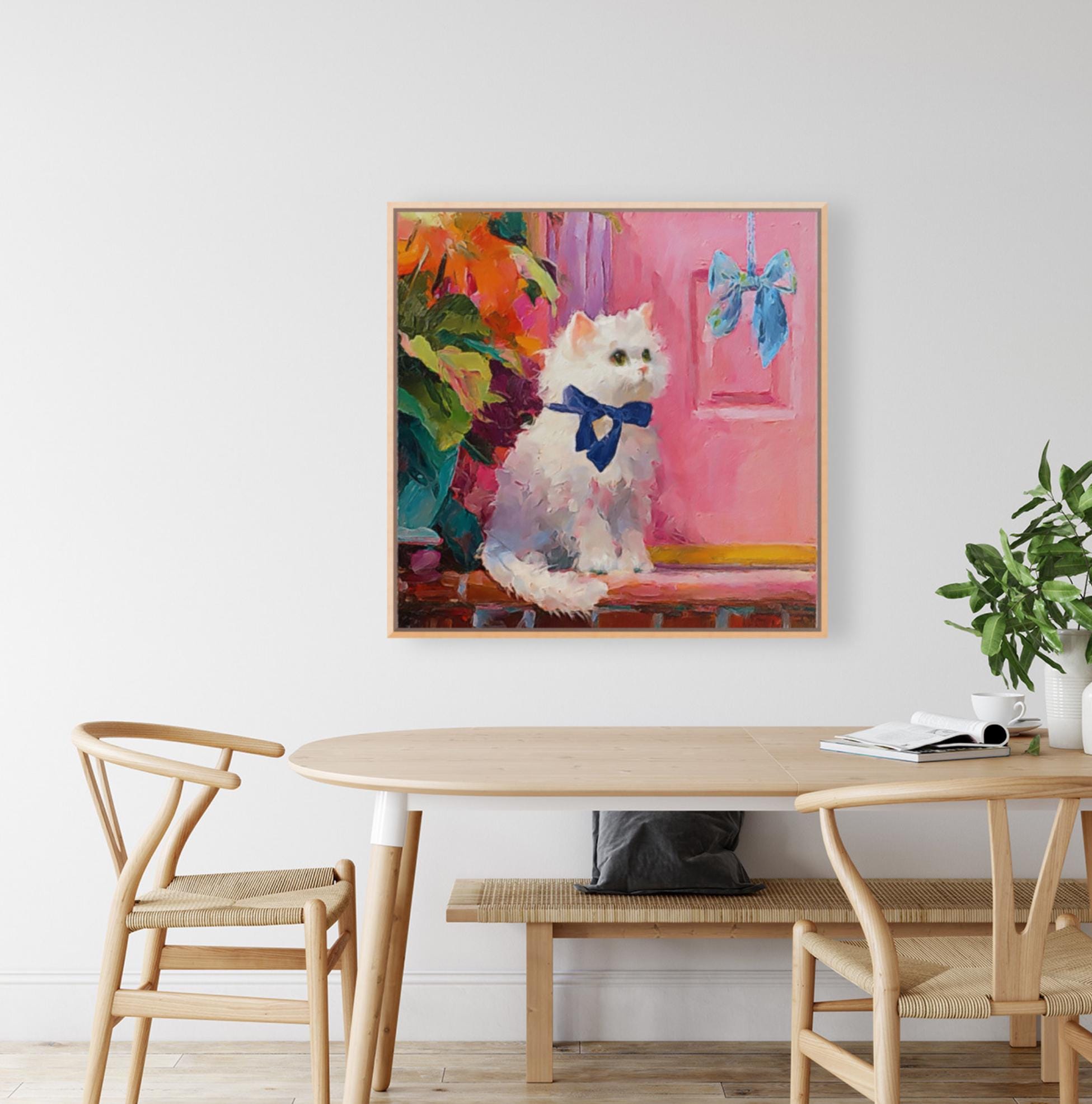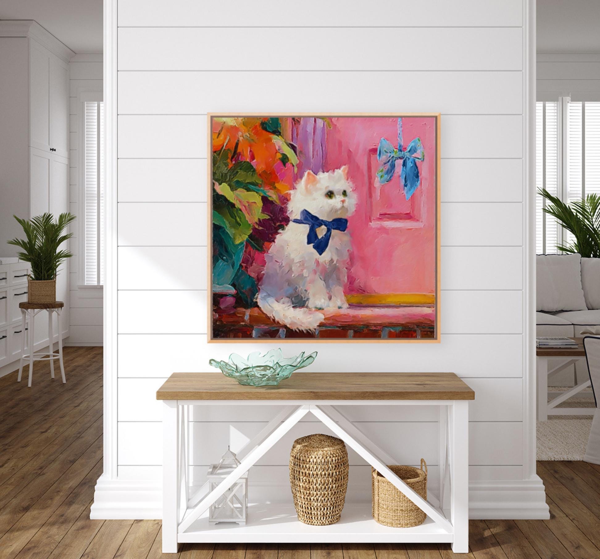 Grandmillennial art, A New Toy, preppy kitten signed fine art print