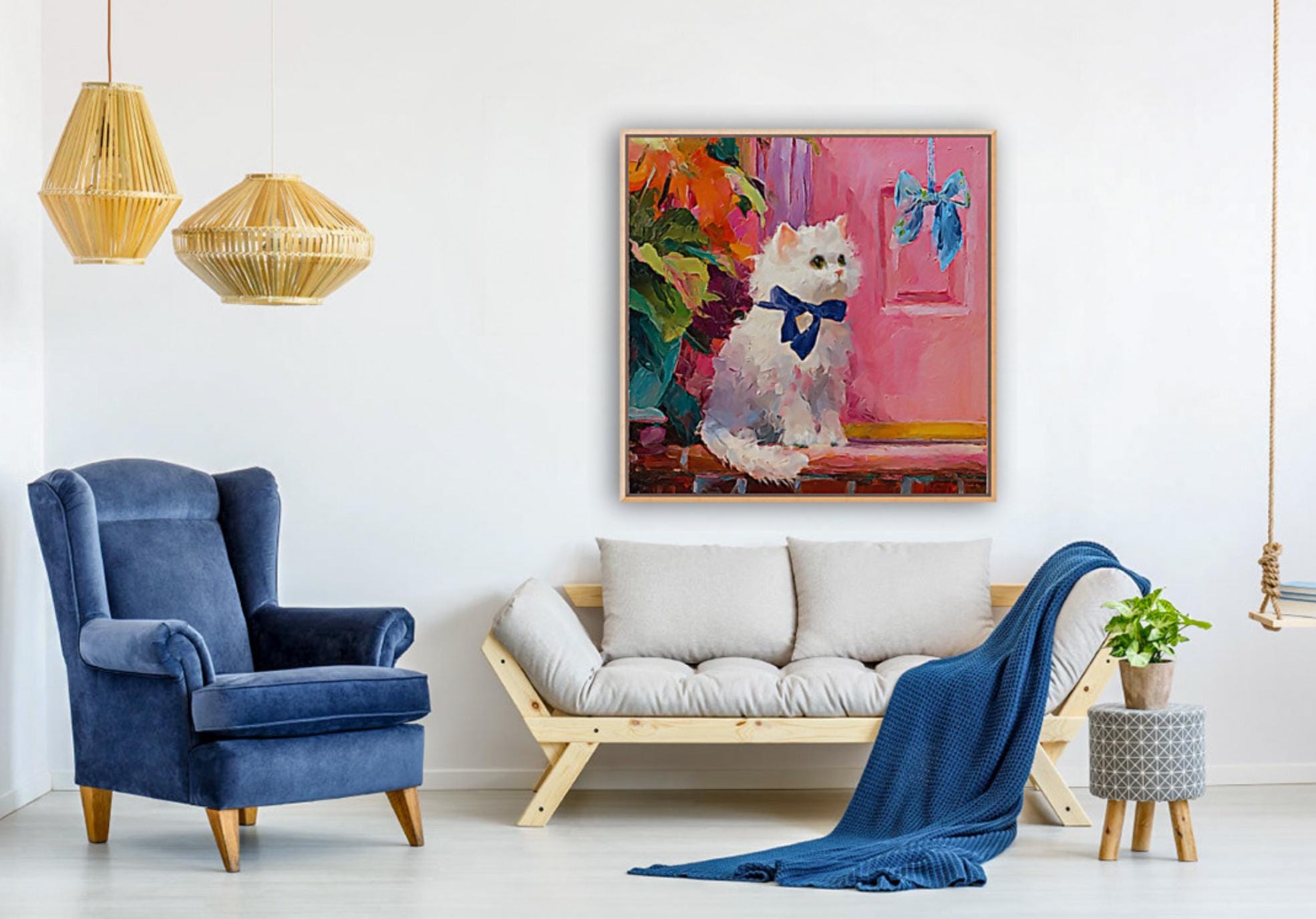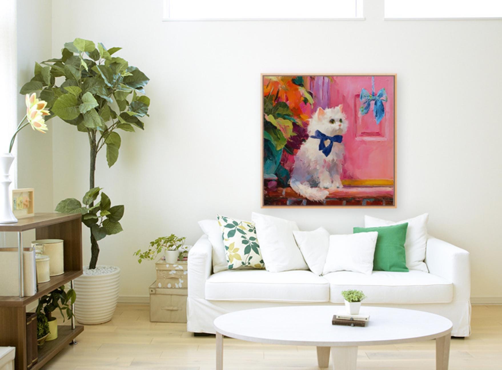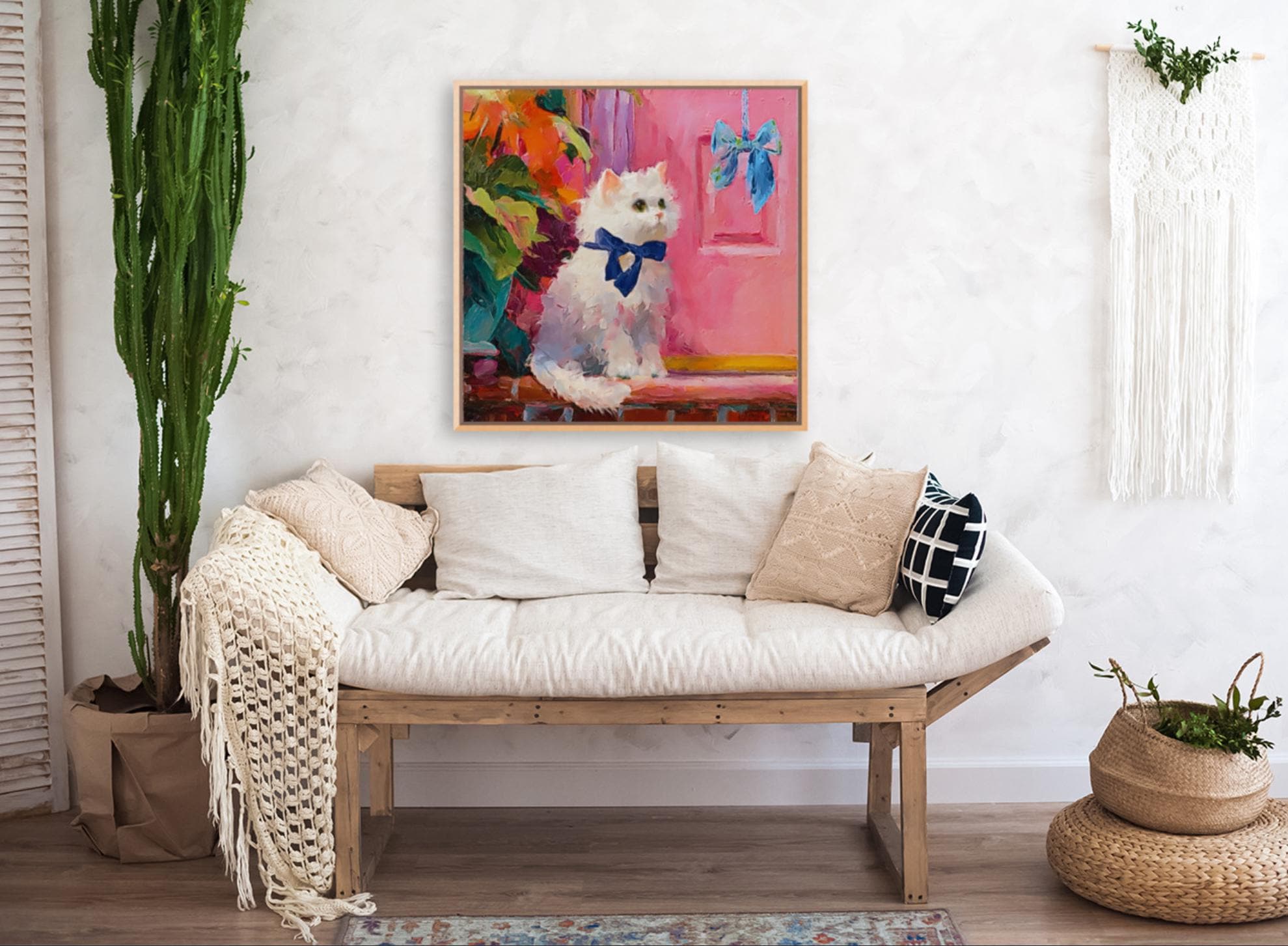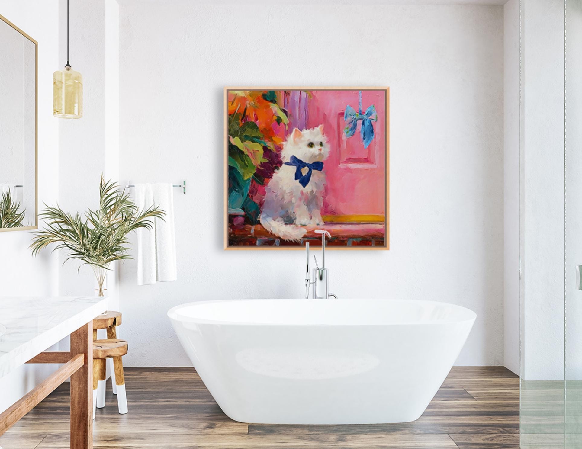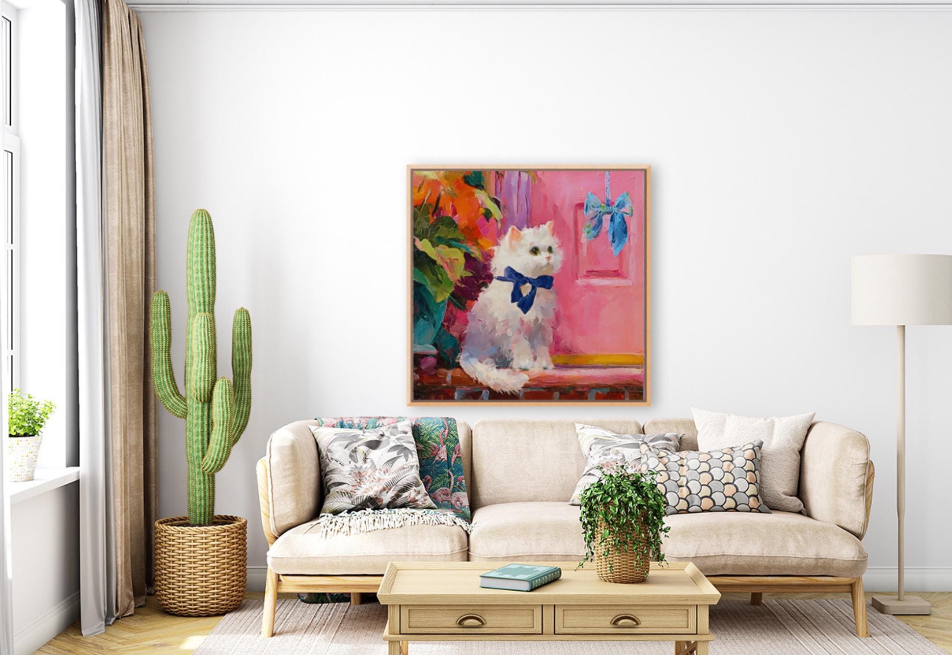 Grandmillennial art, A New Toy, preppy kitten signed fine art print