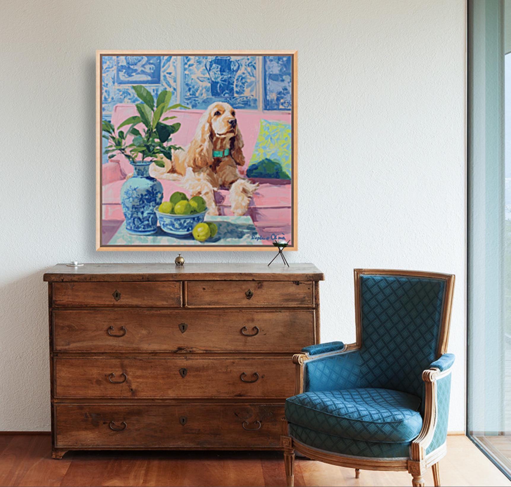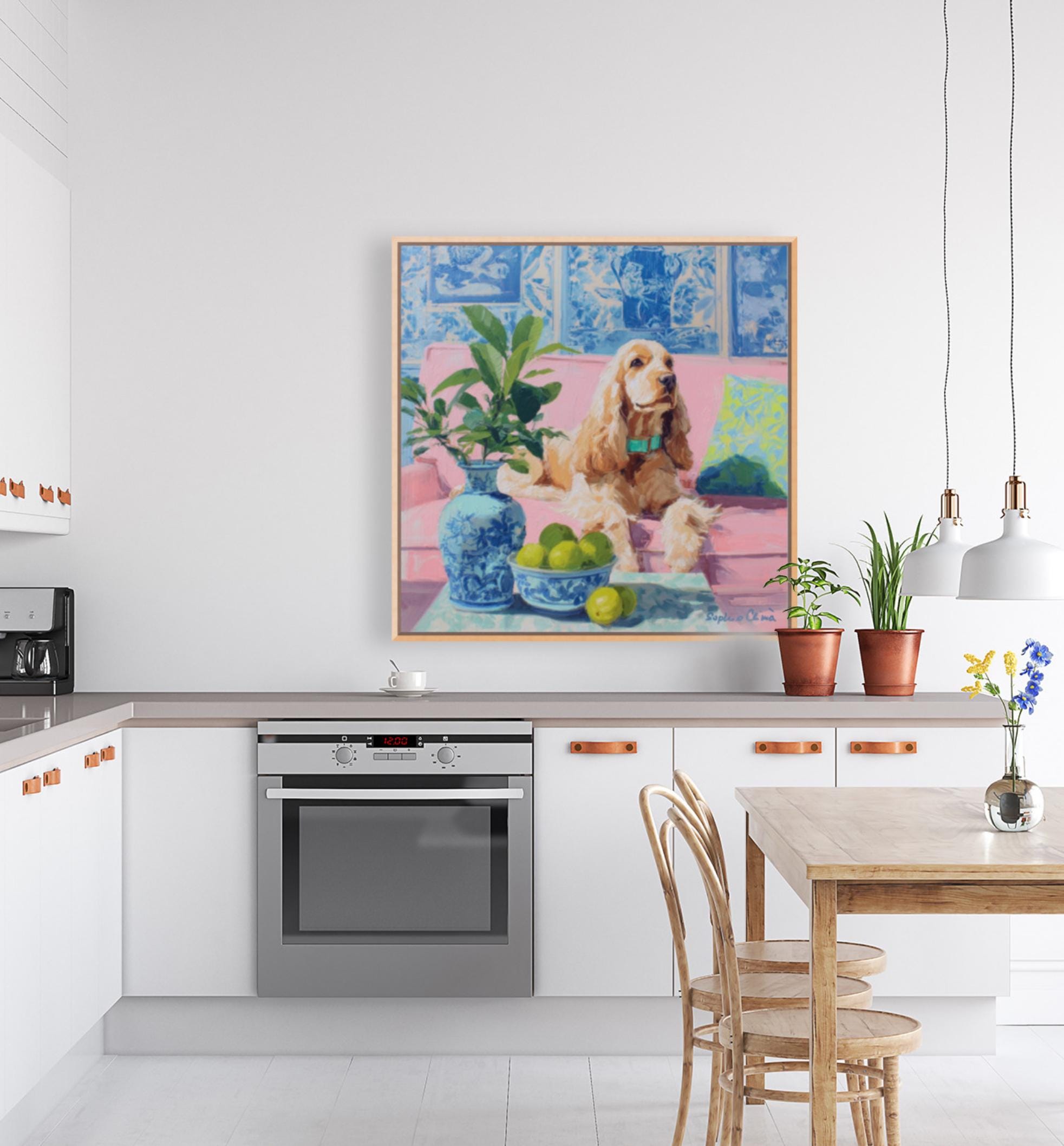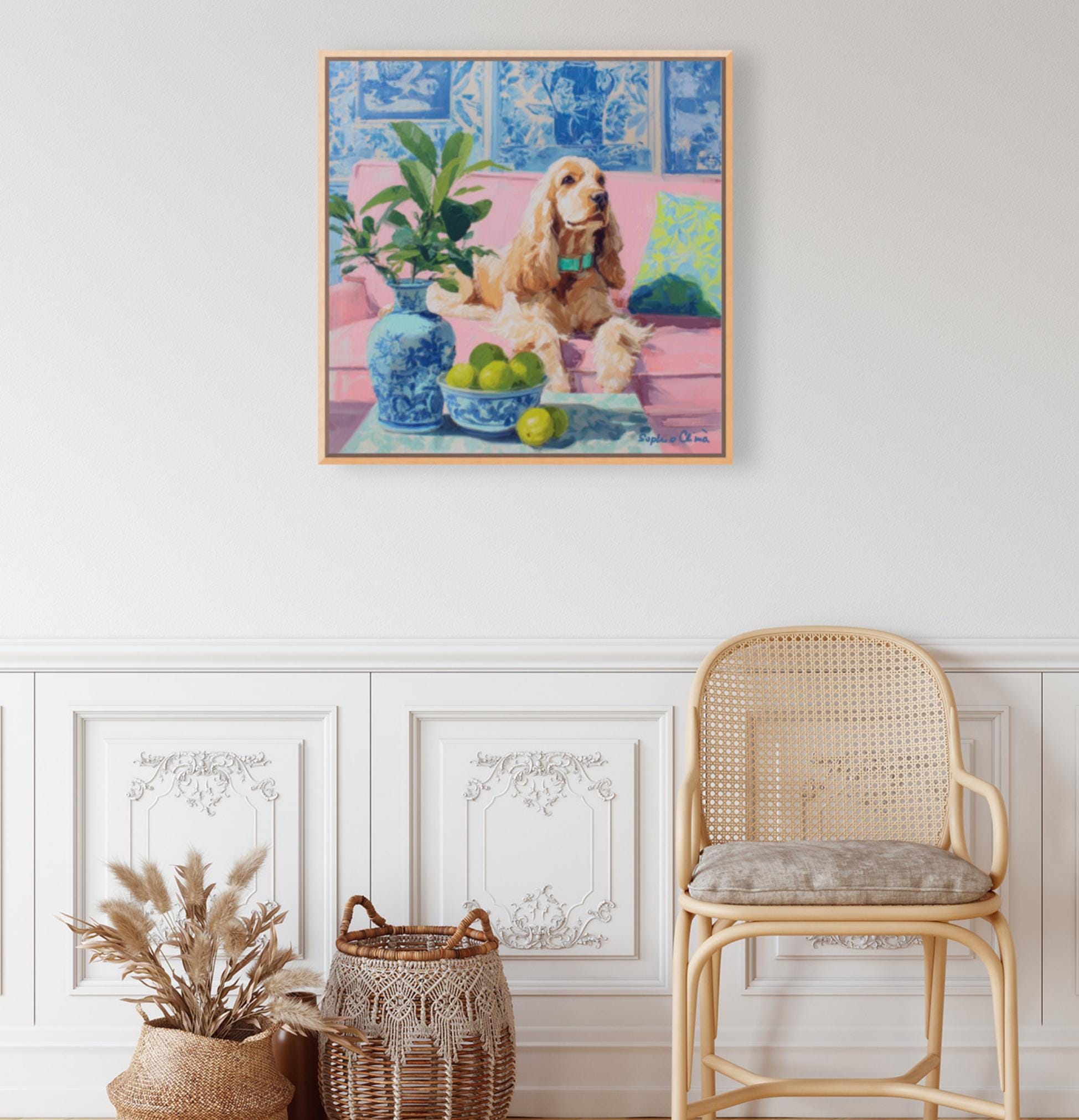 Whimsical Grandmillennial Art: Nostalgic Coastal Cocker Spaniel giclee print