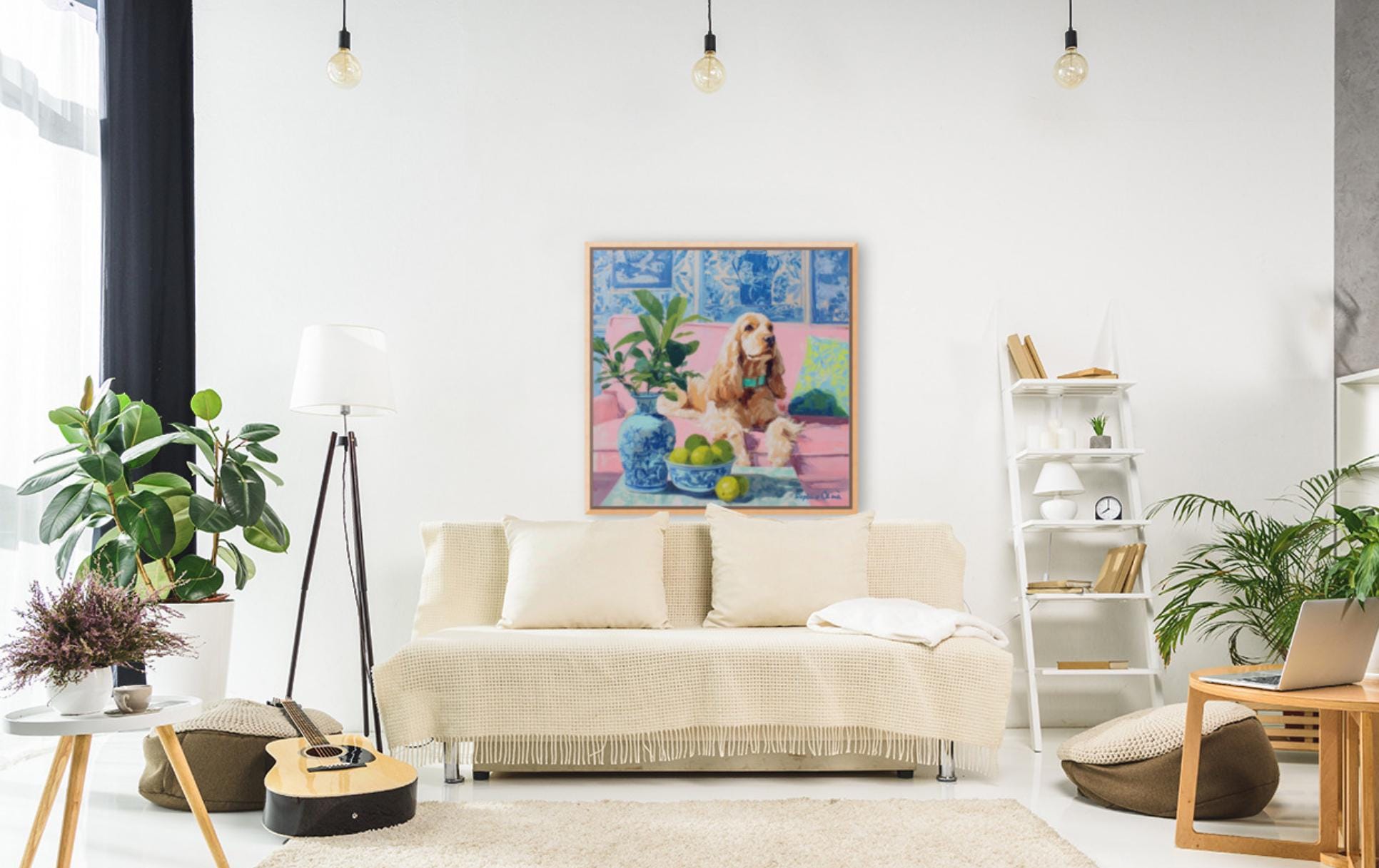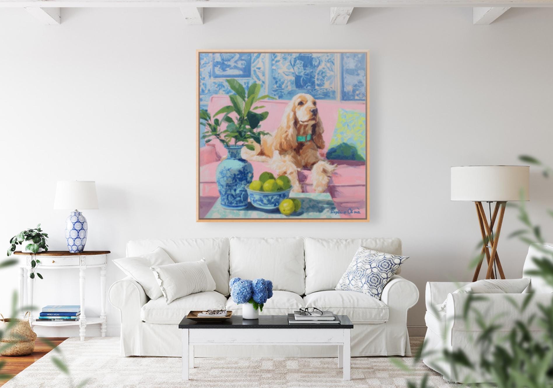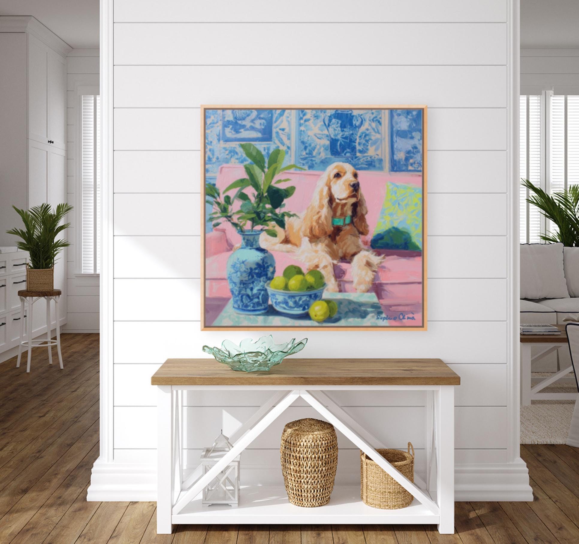Whimsical Grandmillennial Art: Nostalgic Coastal Cocker Spaniel giclee print