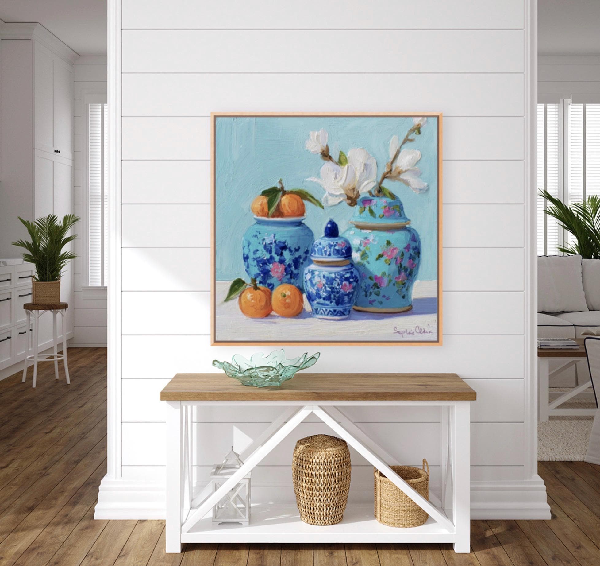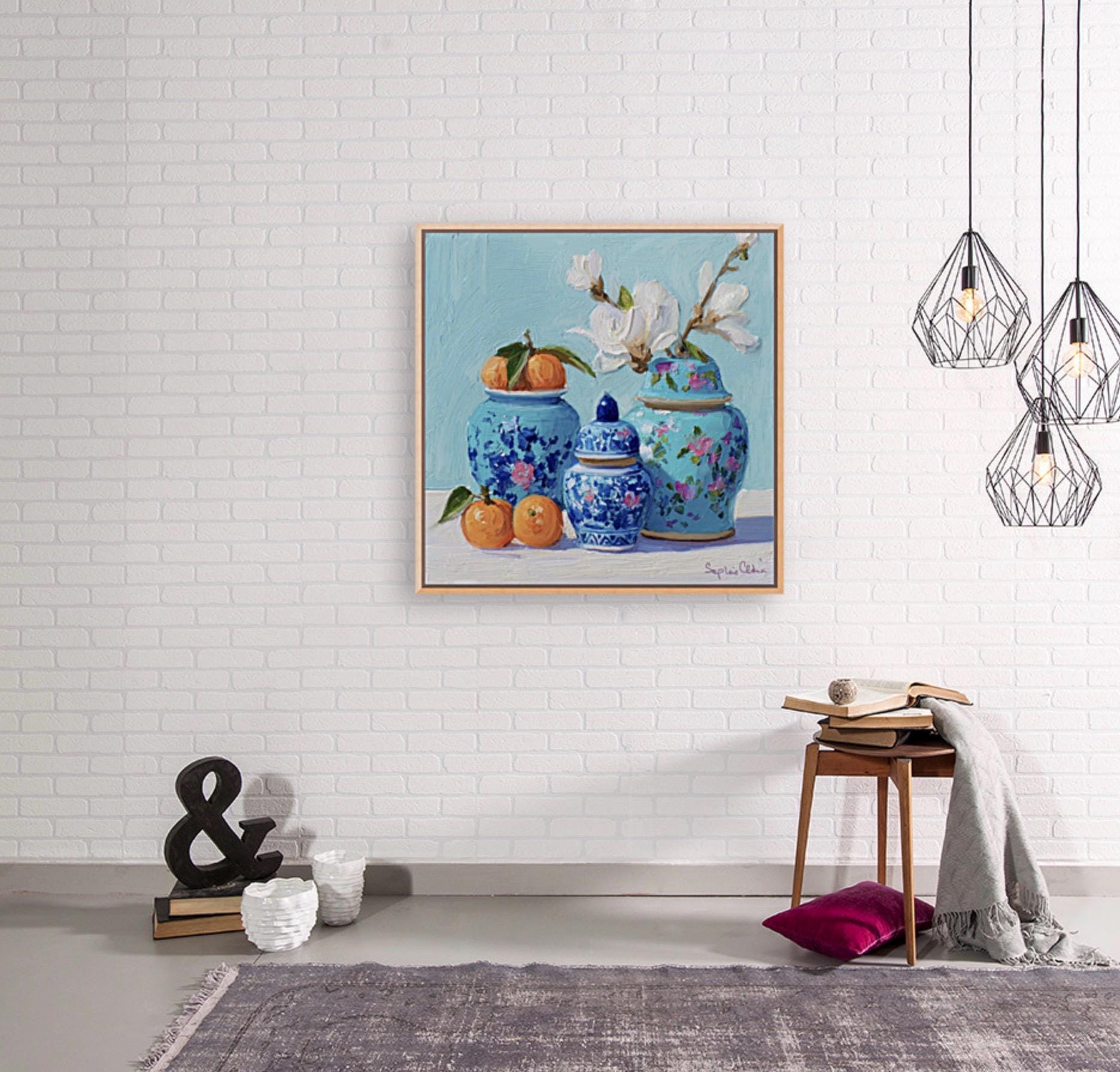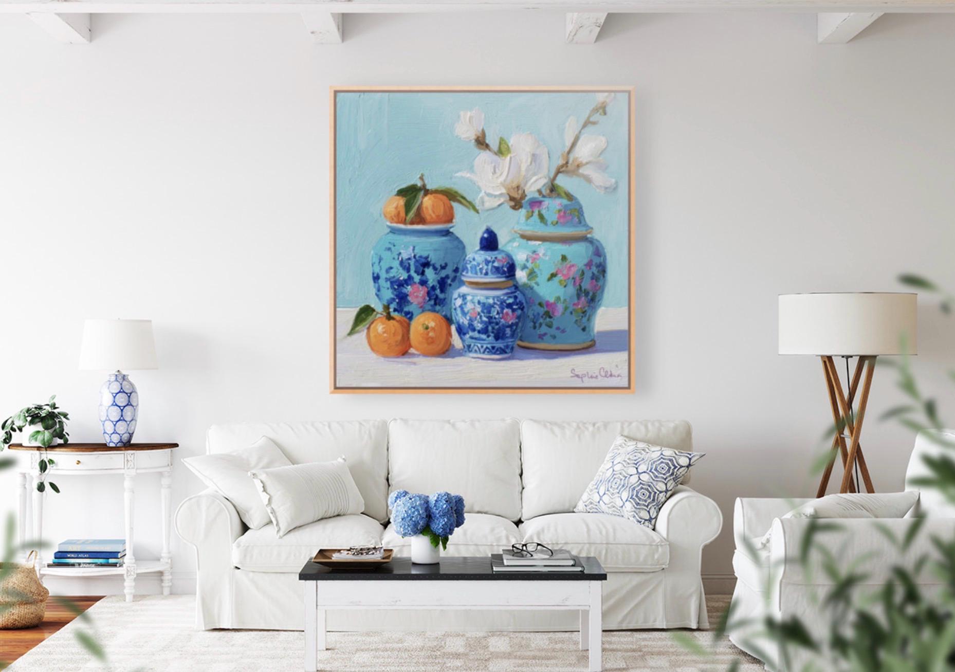 Sophie's art is the modern interpretation of Chinese artistic traditions featuring pagodas, landscapes, blue and white porcelain, ginger jars, pagodas, cheetahs and monkeys. Sophie developed her own recognizable style with bright colors and whimsical details.