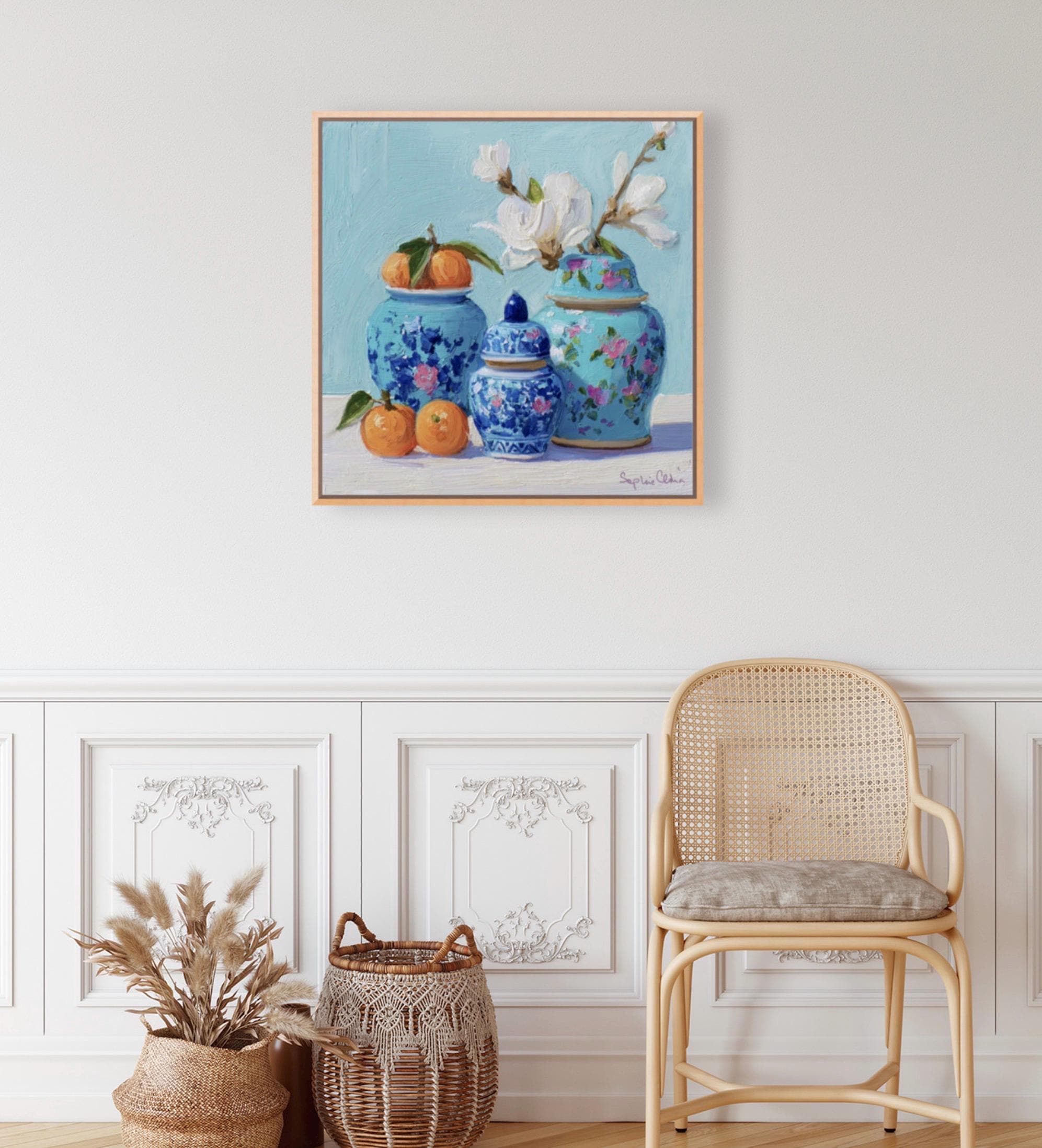 Ginger jar with magnolia and persimmon signed giclee print