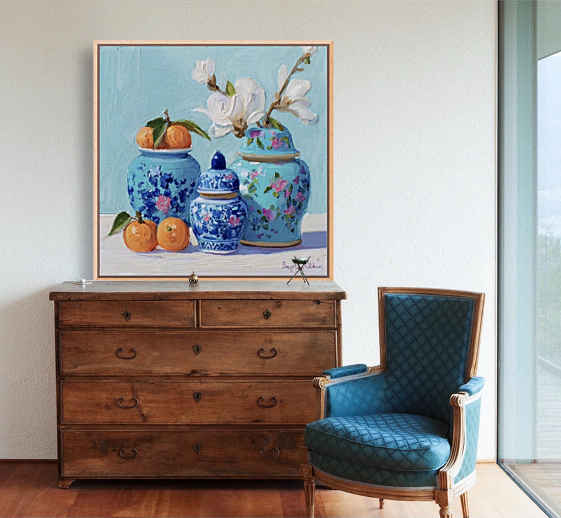 Many customers mention in reviews that the paper and colours feel like a piece from an art gallery. PLEASE NOTE SIZES ARE IN CM. Limited edition Giclee art print of original watercolor by Sophie Clima. #3 painting from Birds and Flowers series. Unframed. Ships in a tube. Each print is signed and dated by Sophie. These watercolor chinoiserie prints will complement your Grandmillennial Style, Chinoiserie Chic Style, Grandmillennial Decor, or Preppy Chic Style Decor. Will look great on Office walls as well.