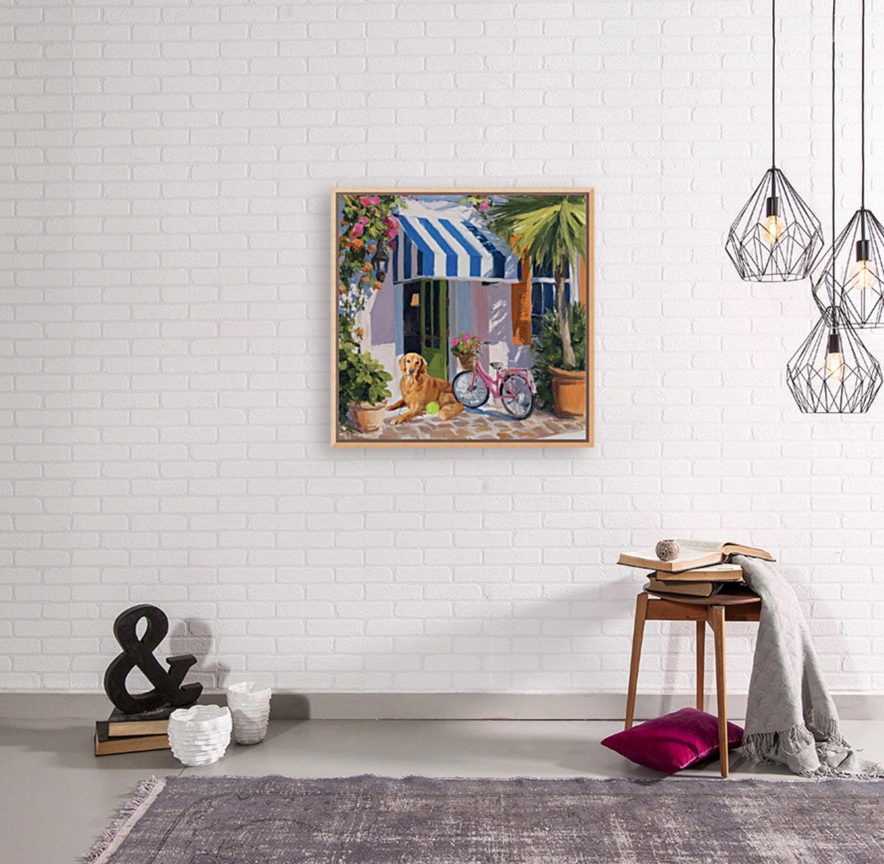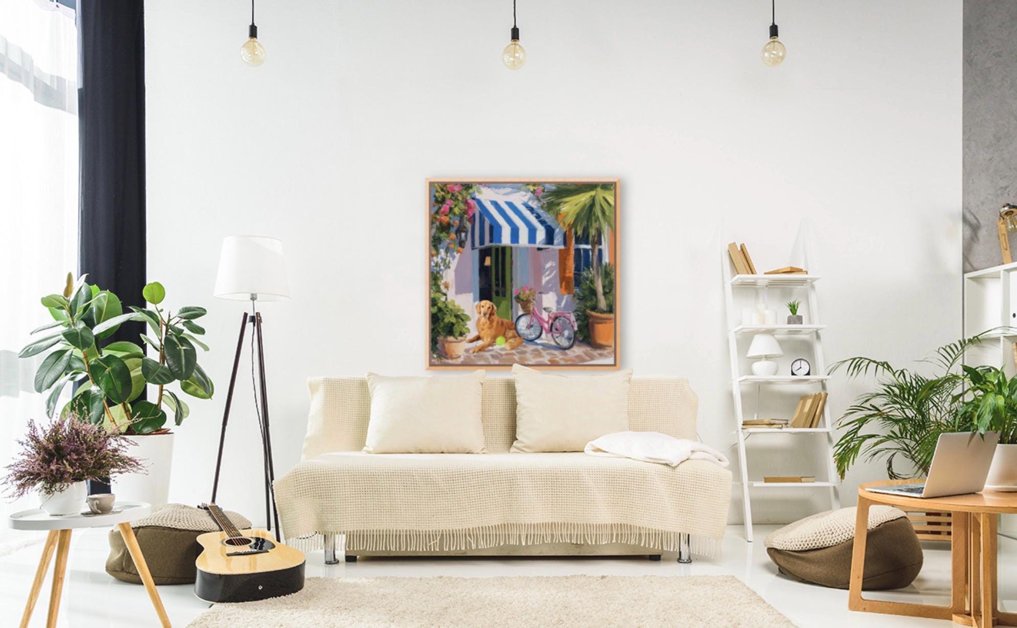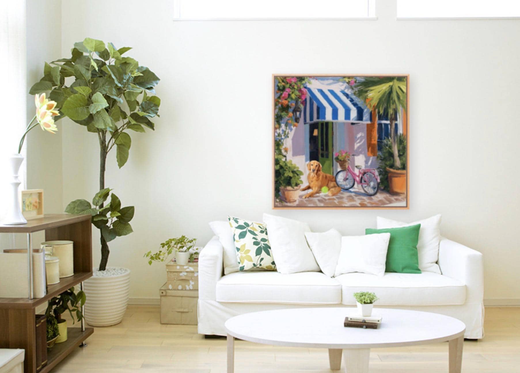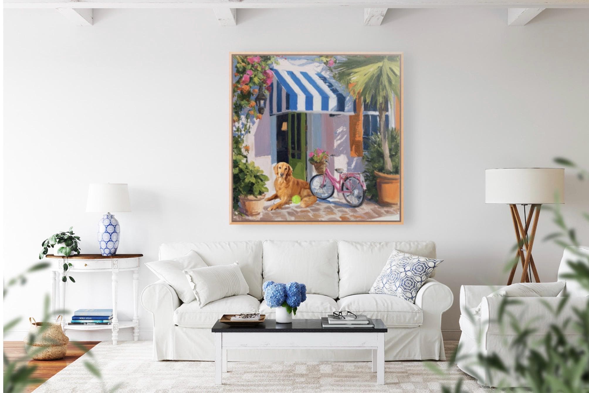 Golden Retriever Art Print, Pink Bicycle, Palm Beach Cabana