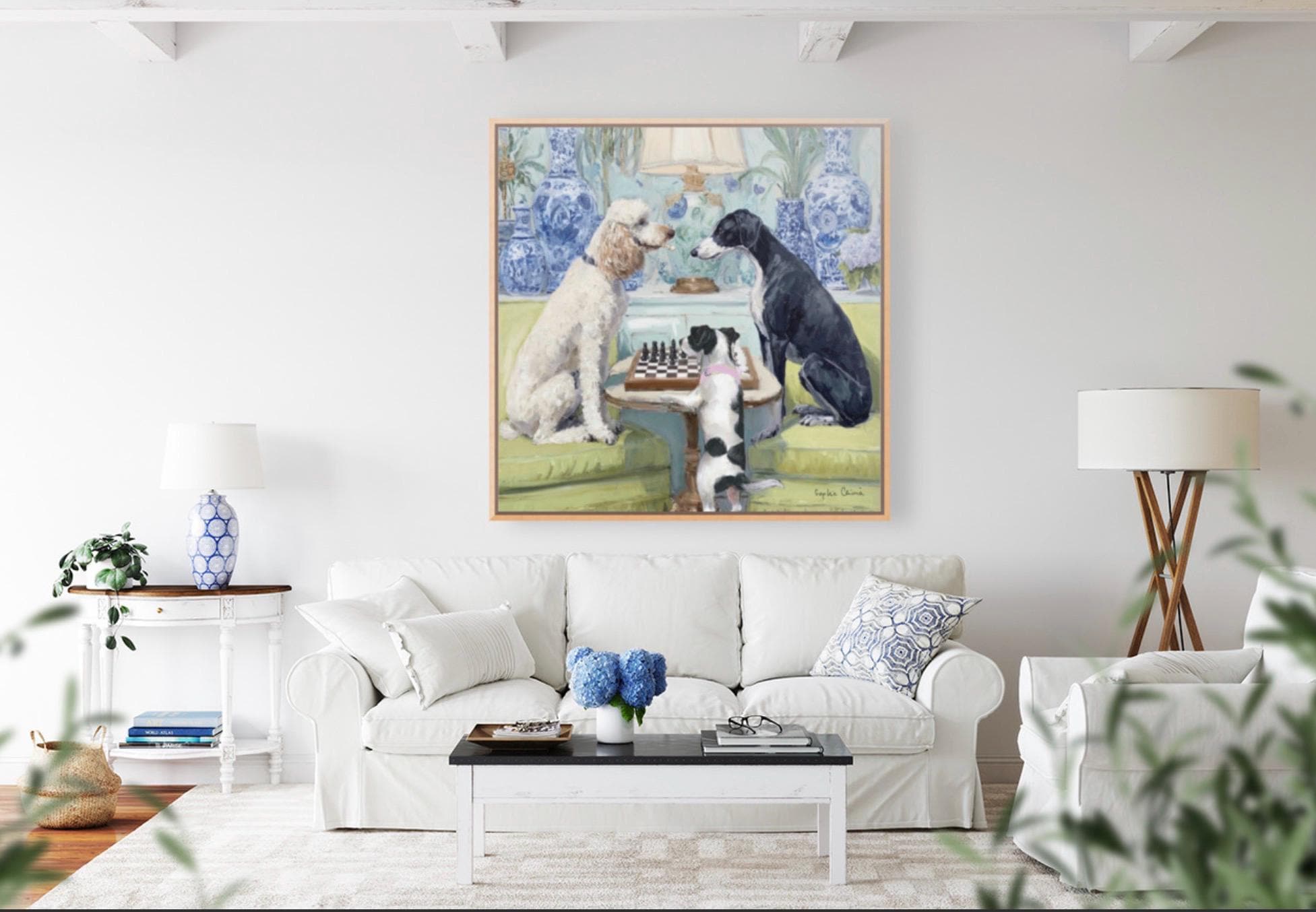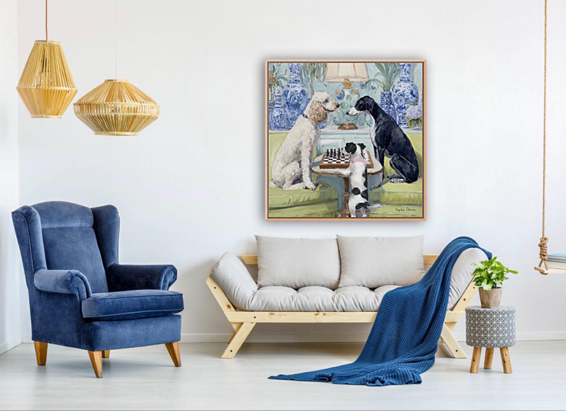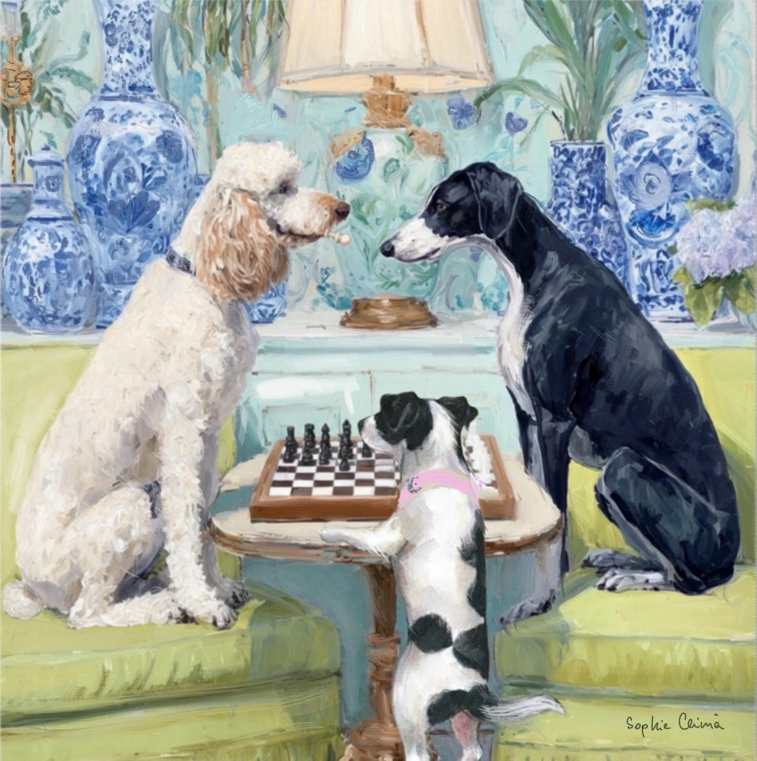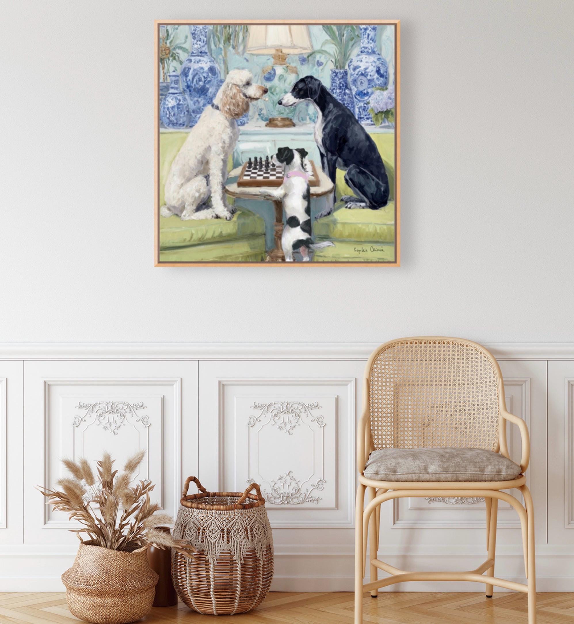 Grandmillennial art, A Game of Chess, whimsical dogs fine art