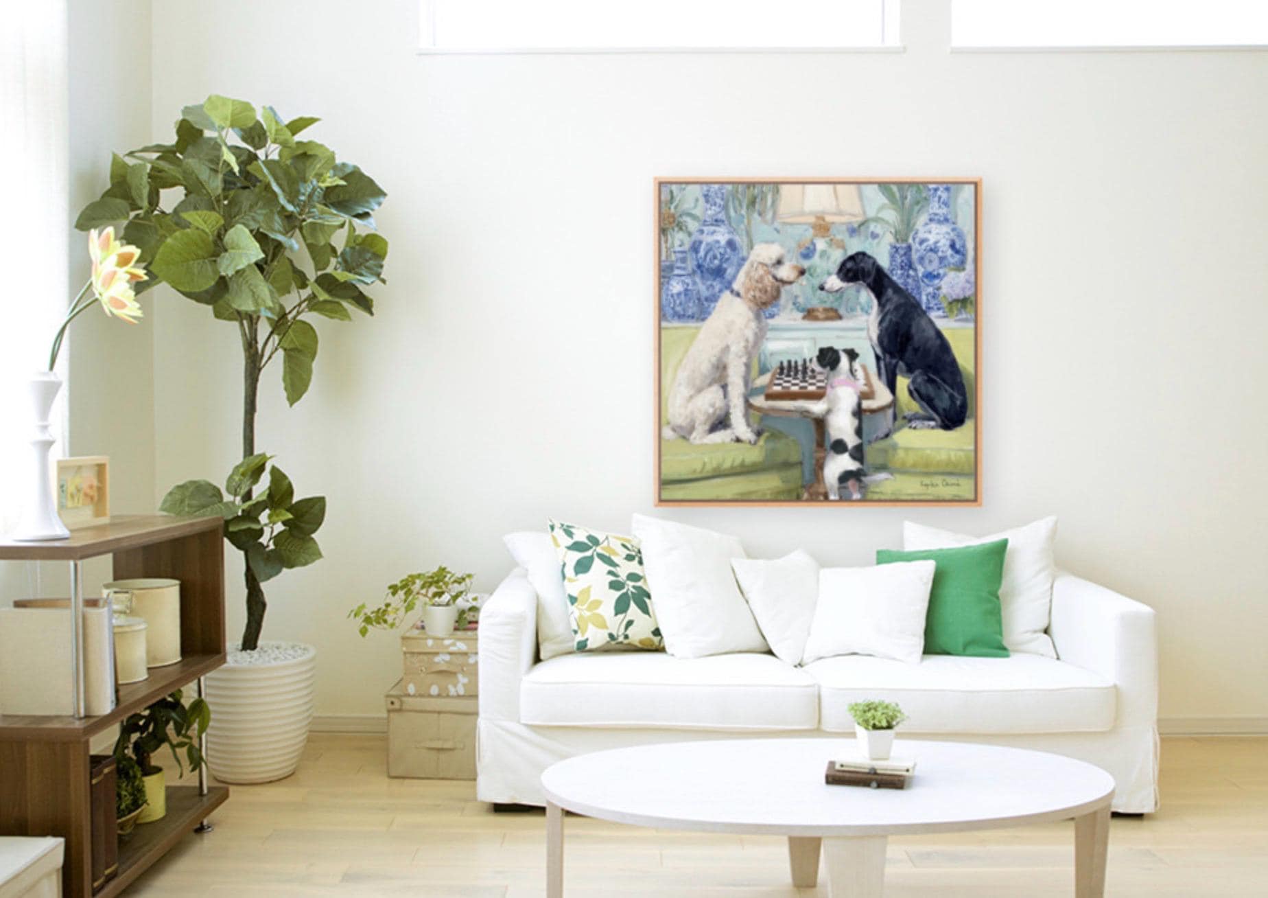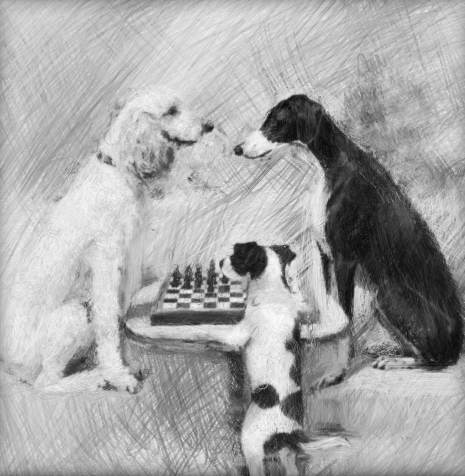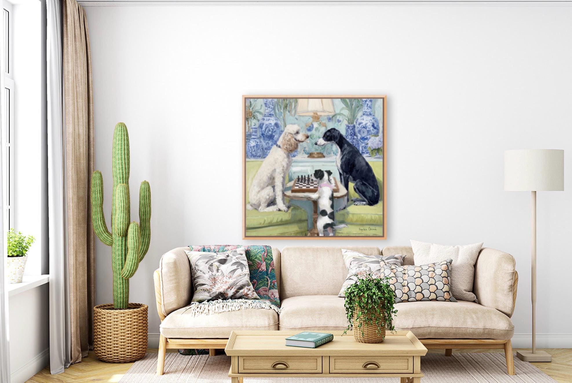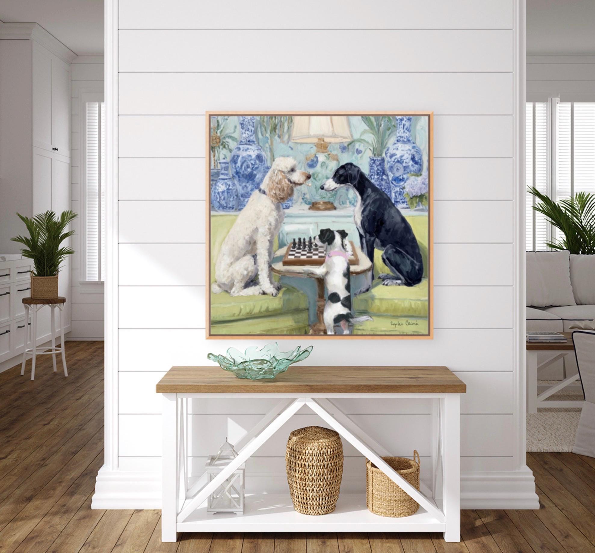 Grandmillennial art, A Game of Chess, whimsical dogs fine art