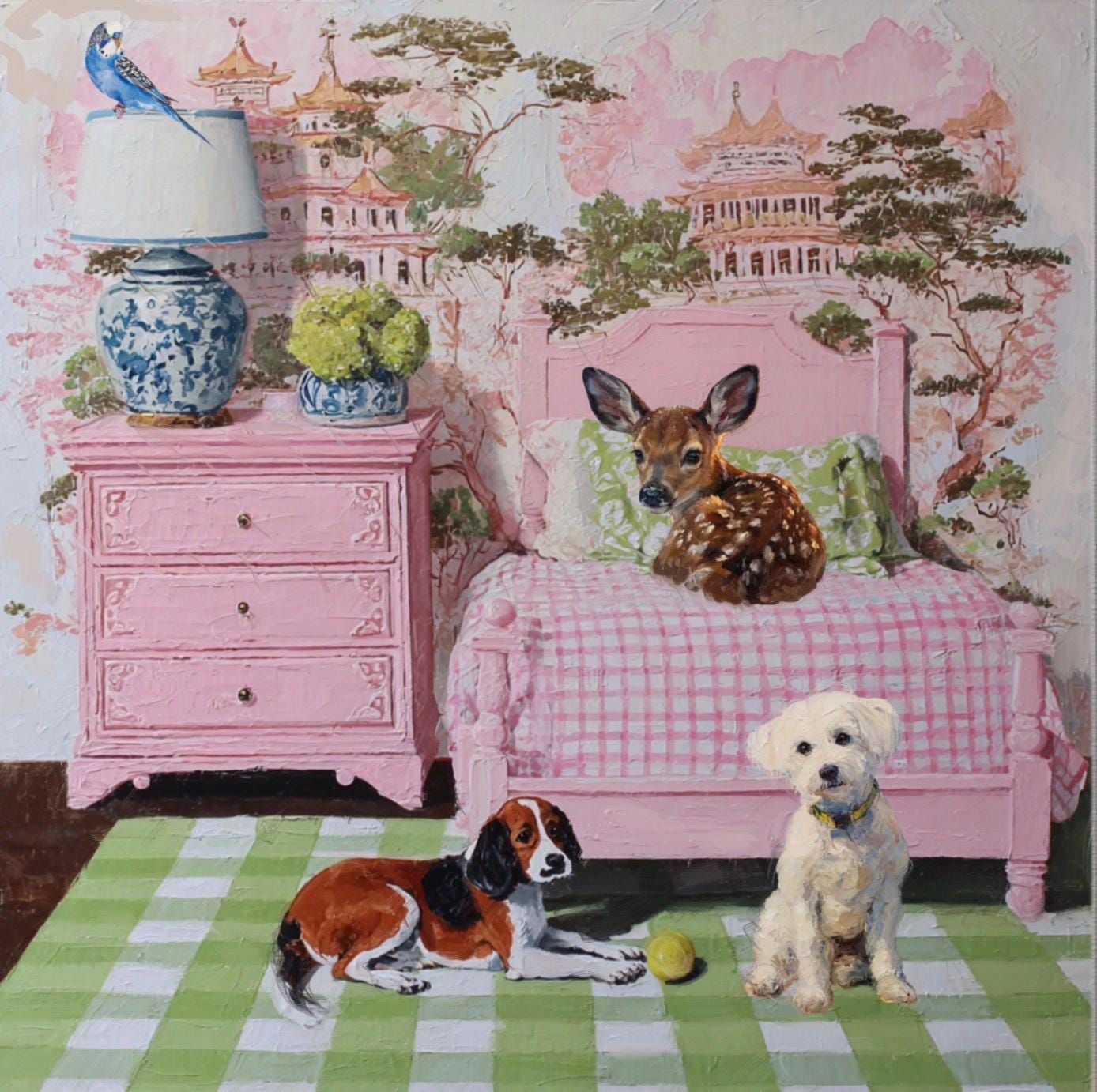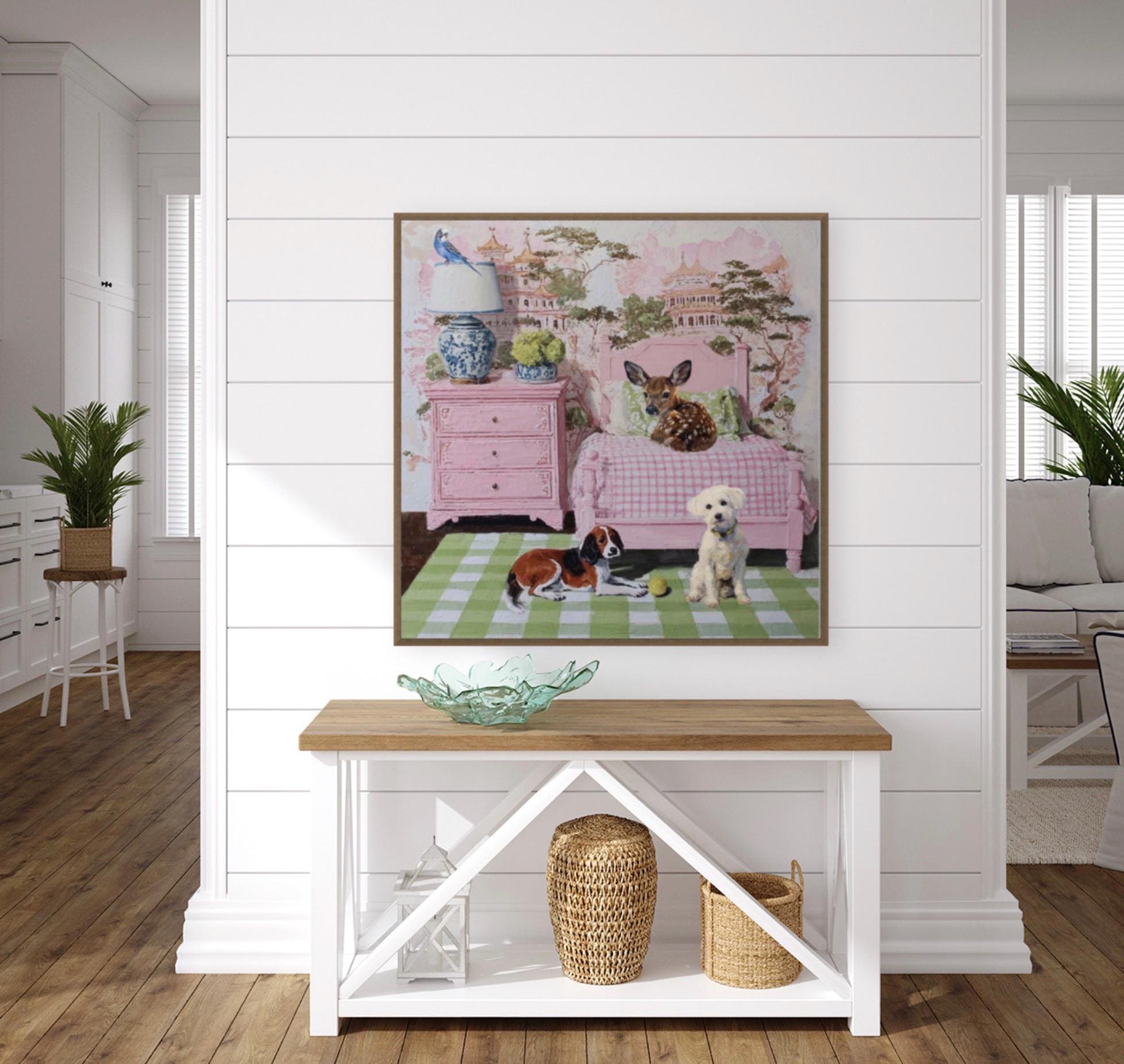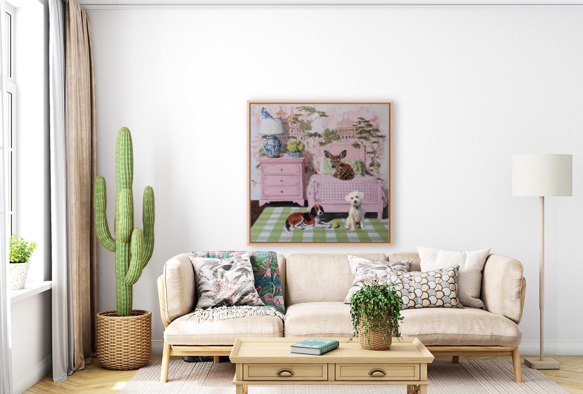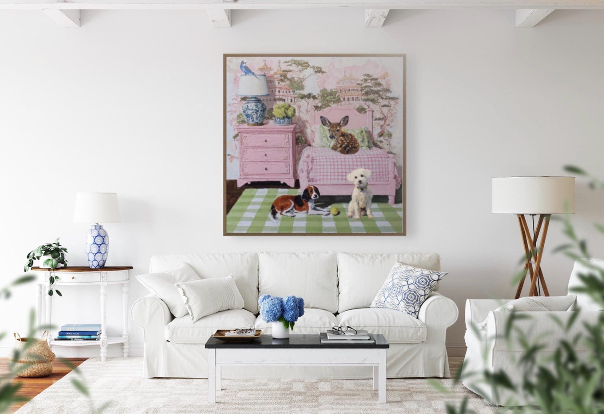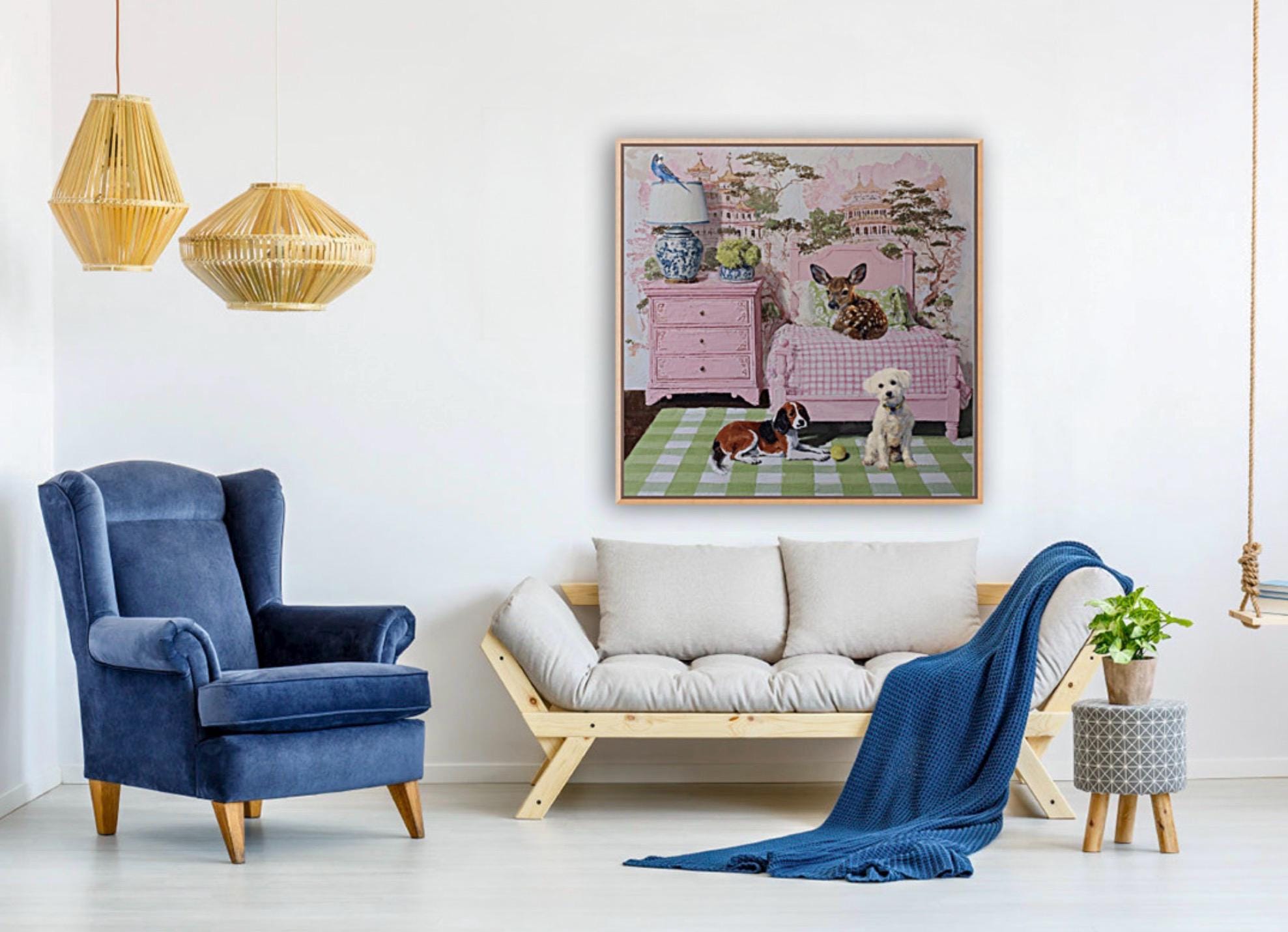 Grandmillennial art, In the Guestroom, Whimsical animals giclee