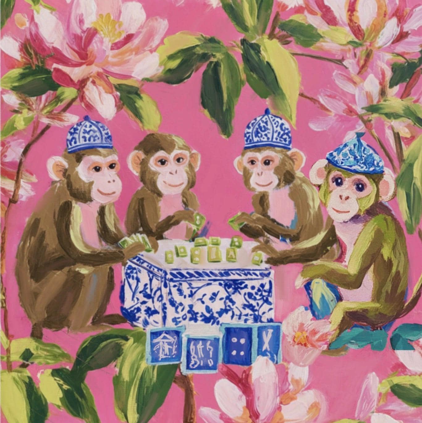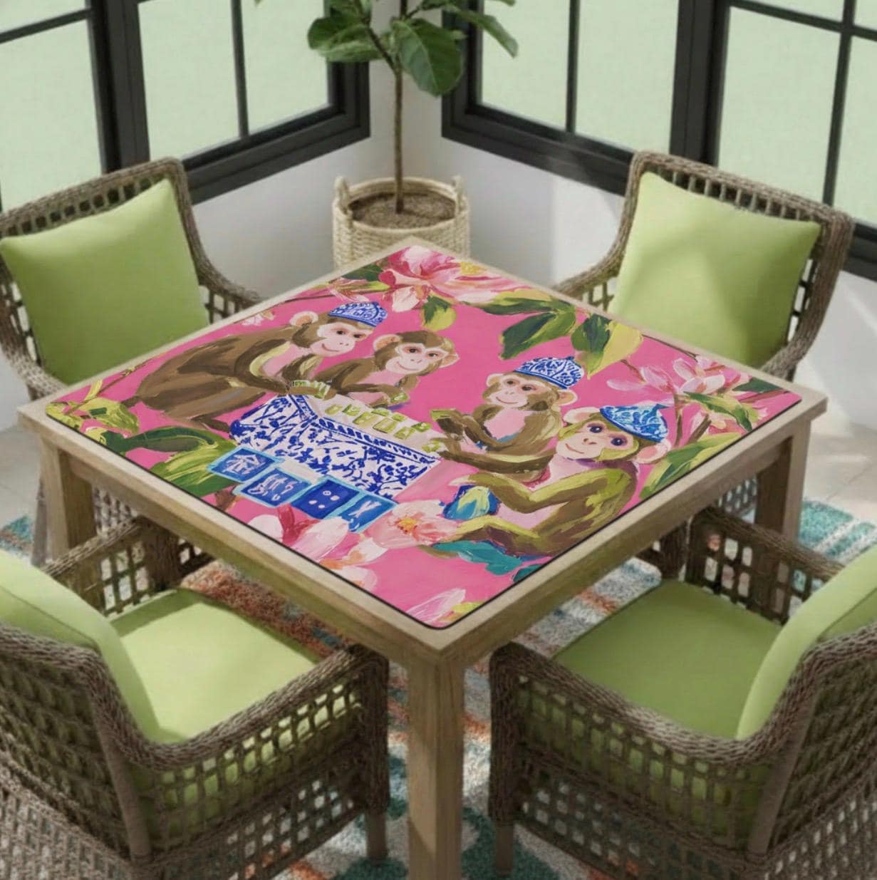 Our bright and playful chinoiserie mat brings playful chinoiserie style to your game table. Makes a perfect gift for mahjong hostesses. Comes in four sizes to fit your needs. Soft, durable neoprene surface with non-slip backing. Preppy Palm Beach color paletteEco-friendly printing process. Quick shipping to all US states. Can be monogrammed. Put the letters in the personalisation box.