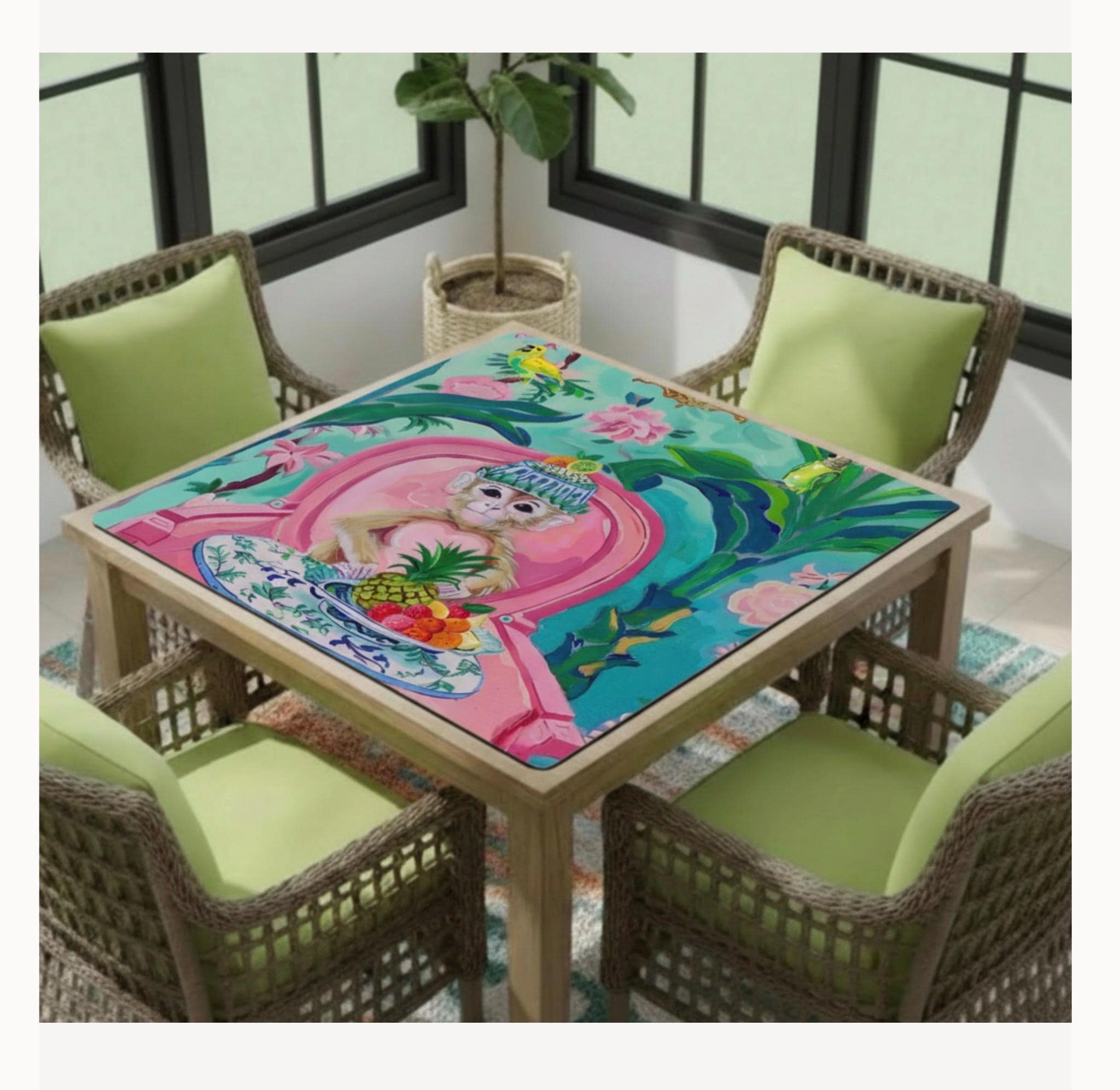 Our bright and playful chinoiserie mat brings playful chinoiserie style to your game table. Makes a perfect gift for mahjong hostesses. Comes in four sizes to fit your needs. Soft, durable neoprene surface with non-slip backing. Preppy Palm Beach color paletteEco-friendly printing process. Quick shipping to all US states. Can be monogrammed. Put the letters in the personalisation box.